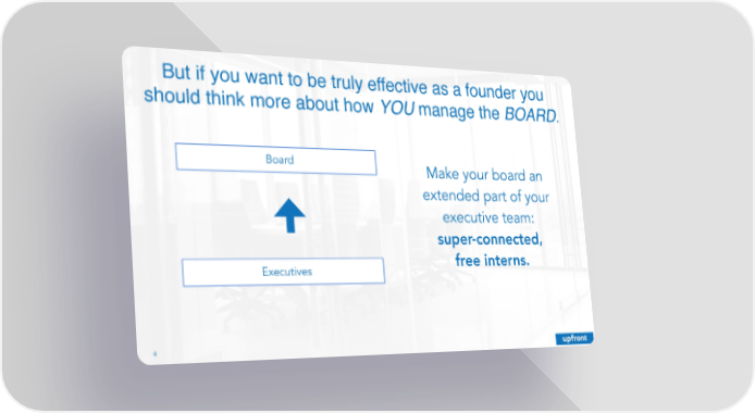 But if you want to be truly effective as a founder you should think more about how YOU manage the BOARD. Board Make your board an extended part of your executive team: super-connected, Executives free interns. 4