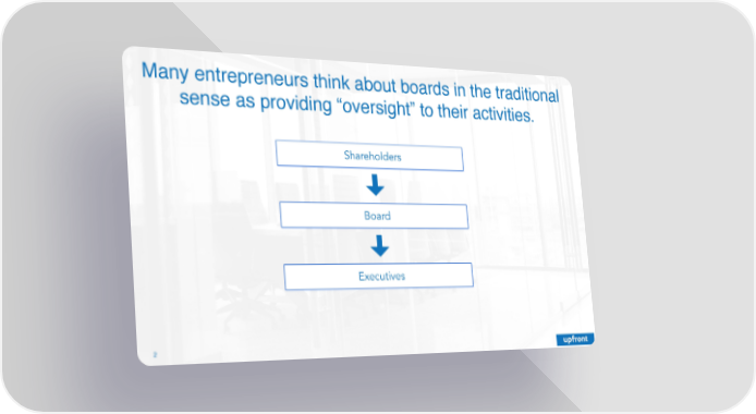 Many entrepreneurs think about boards in the traditional sense as providing “oversight” to their activities. Shareholders Board Executives 2