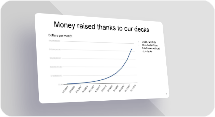 Money raised thanks to our decks - US$s, not C$s - 95% better than fundraises without our decks 6 YC seed Page 5 Page 7