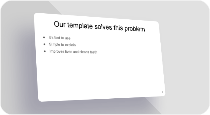 Our template solves this problem β Itβs fast to use β Simple to explain β Improves lives and cleans teeth 4 YC seed Page 3 Page 5
