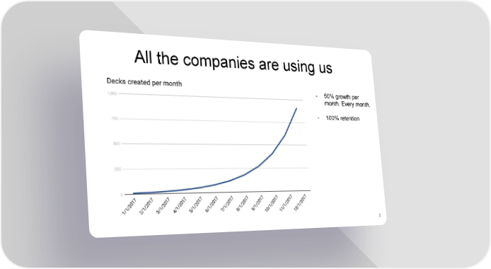 All the companies are using us - 50% growth per month. Every month. - 100% retention 5 YC seed Page 4 Page 6
